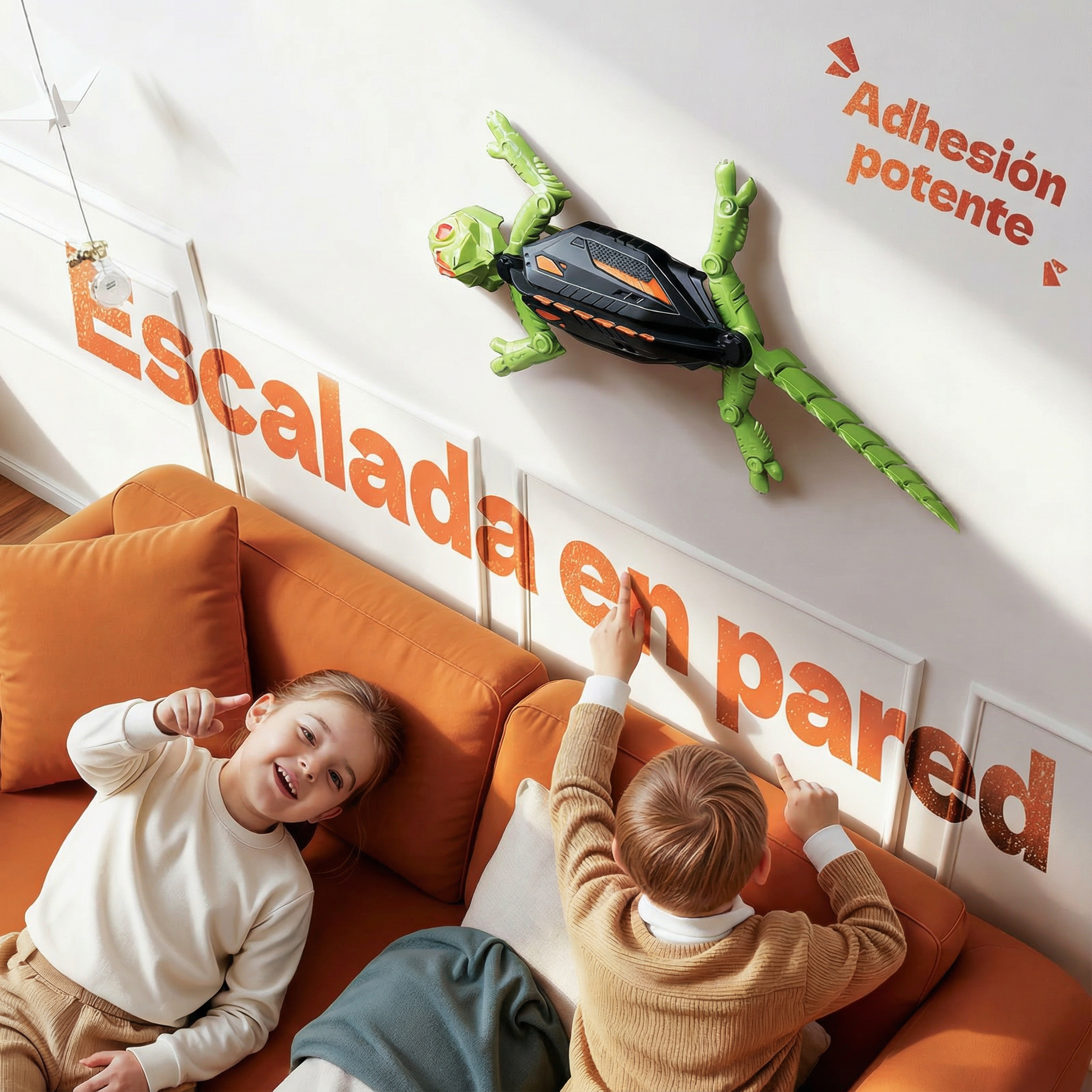 ¡Mira cómo se quedan boquiabiertos! Gracias a su avanzada tecnología de succión, Robo Raptor RC™ desafía la gravedad: trepa paredes y se desliza por techos como un lagarto real. Es pura magia de “¿cómo es posible que haga eso?”.